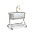 The crib has a side that can be opened for co-sleeping and the height is adjustable to 6 independent positions, with anti-reflux function. The aluminium frame is lightweight and easy to move around, thanks to the 4 swivelling rubber wheels with brake: by rotating the wheels 180°, the crib can convert into a rocking crib.